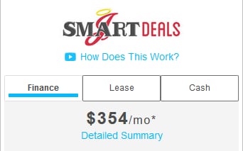 When you're looking at a vehicle, find the button that says "Smart Deals." Our personalized Smart Deals payment tool helps you account for factors such as auto loans, down payments, interest rates and cash deals. This allows you to personalize your own monthly payments, on your own time, from the comfort of your own home, whether you're leasing or purchasing.