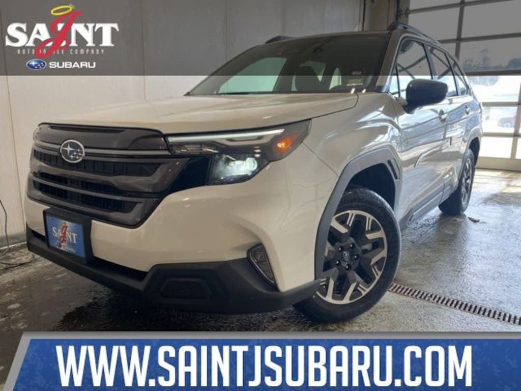 Saint J Subaru is proud to present you with another True Market Priced Vehicle. This 2026 Subaru Forester Premium is loaded with the following Factory Options: Power Rear Gate and Blind Spot Detection with Rear Cross Traffic Alert (Automatic Emergency Steering, Blind-Spot Detection (BSD)/RCTA System, Emergency Lane Keep Assist, and Power Rear Gate), 4-Wheel Disc Brakes, 6 Speakers, ABS brakes, Air Conditioning, All-Weather Floor Liners, Alloy wheels, AM/FM radio: SiriusXM with 360L, Anti-whiplash front head restraints, Auto High-beam Headlights, Automatic temperature control, Body Side Molding - Crystal White Pearl, Brake assist, Bumpers: body-color, Cargo Net, Cargo Tray, Driver door bin, Driver vanity mirror, Dual front impact airbags, Dual front side impact airbags, Electronic Stability Control, Emergency communication system: MySubaru Companion (5-years free), Exterior Parking Camera Rear, Four wheel independent suspension, Front anti-roll bar, Front Bucket Seats, Front Center Armrest, Front dual zone A/C, Front fog lights, Front reading lights, Fully automatic headlights, Heated door mirrors, Heated Front Bucket Seats, Heated front seats, Illuminated entry, Knee airbag, Leather steering wheel, Low tire pressure warning, Occupant sensing airbag, Outside temperature display, Overhead airbag, Overhead console, Panic alarm, Passenger door bin, Passenger vanity mirror, Power door mirrors, Power driver seat, Power moonroof: Panoramic, Power steering, Power windows, Premium Textured Cloth Upholstery, Radio data system, Radio: Subaru 11.6" Multimedia Plus System, Rear anti-roll bar, Rear Bumper Cover, Rear seat center armrest, Rear window defroster, Rear window wiper, Remote keyless entry, Security system, Speed control, Speed-sensing steering, Splash Guards, Split folding rear seat, Spoiler, Steering wheel mounted audio controls, Tachometer, Telescoping steering wheel, Tilt steering wheel, Traction control, Trip computer, Variably intermittent wipers, and Wheels: 17" x 7.0 J Dark Metallic Aluminum-Alloy!!