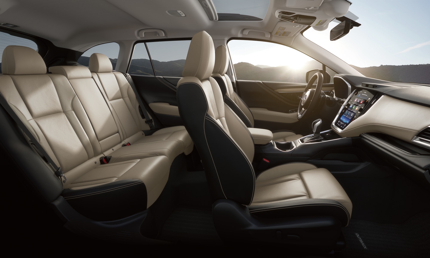 Inside, the spacious and well-appointed cabin offers plenty of room for both passengers and cargo. The Outback's interior is designed with your comfort in mind, featuring available heated front and rear seats, a 10-way power-adjustable driver's seat, and a reclining rear seat. The high-quality materials, including available Nappa leather upholstery, create a welcoming environment for every journey. With up to 75.7 cubic feet of cargo space and a hands-free power rear gate, loading up gear for your next camping trip or ski adventure is a breeze.