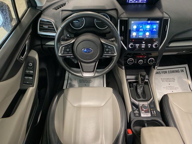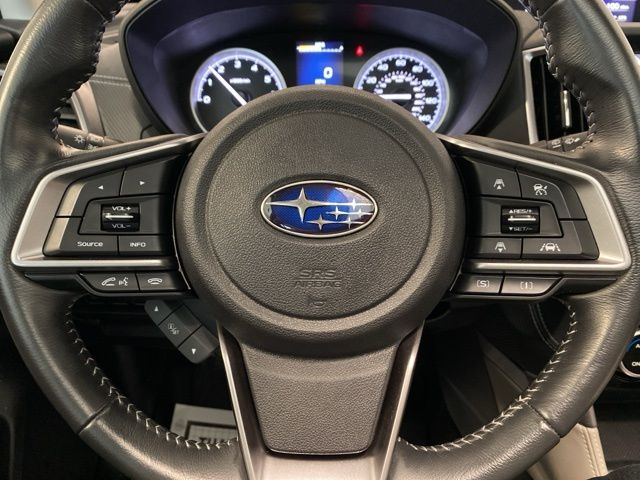 Stepping inside, you'll be greeted by a wealth of premium features, including a panoramic moonroof, a power liftgate, and a Subaru Starlink 8.0" Multimedia Plus System with Apple CarPlay and Android Auto integration. The perforated leather-trimmed upholstery and heated front seats provide a luxurious touch, while the ample cargo space and split-folding rear seat offer unparalleled versatility.